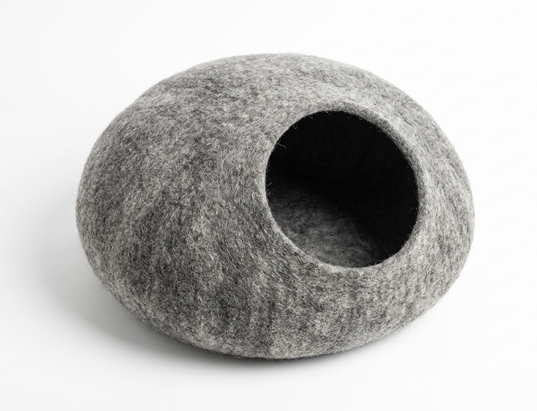 Elevate your cat’s comfort with our 100% natural felted wool cave bed. This eco-friendly sanctuary provides a warm, safe, and quiet space for your pet to rest. Its organic shape and neutral tones are designed to complement a minimalist home aesthetic.